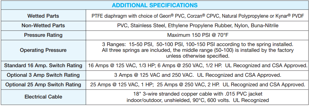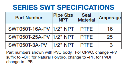 PVC C-PVC PP PVDF本体;1/2”NPT连接;其它连接咨询POM。